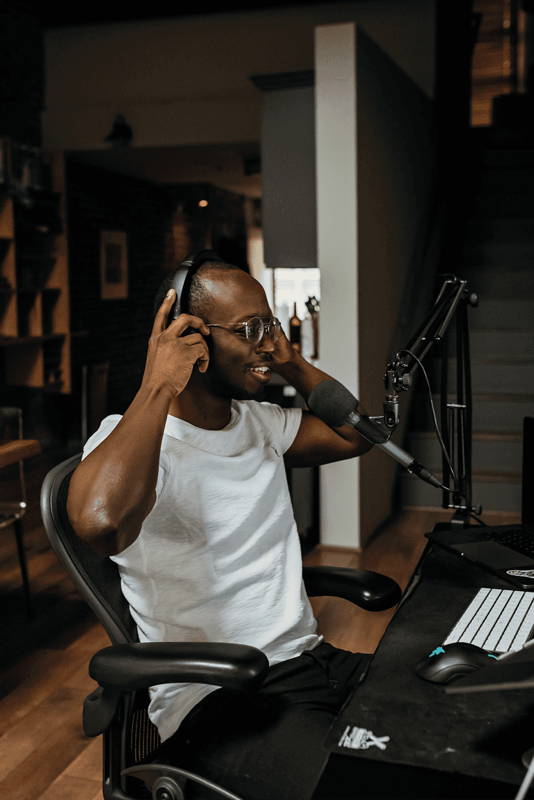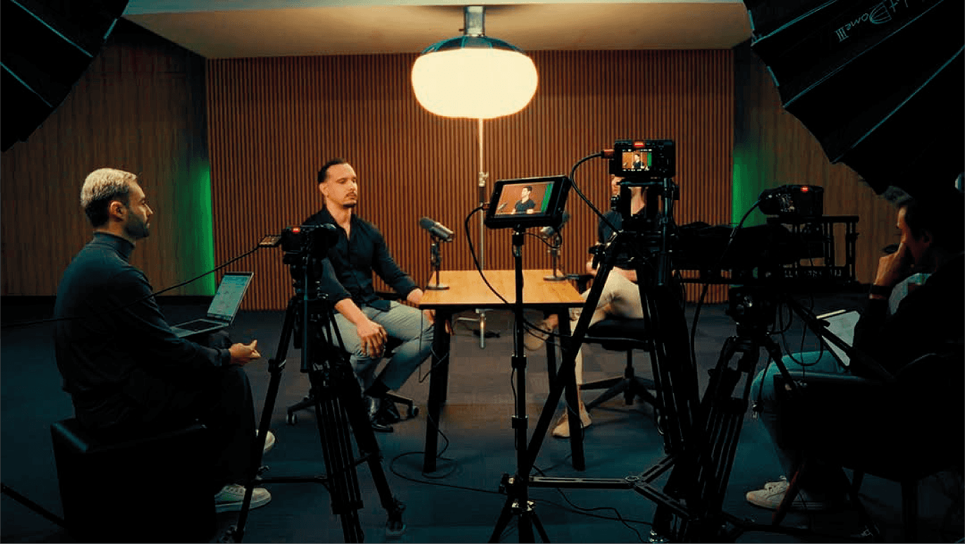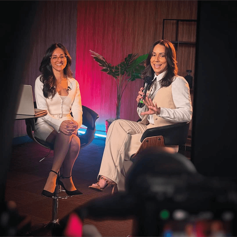 Estúdios prontos para podcasts, entrevistas e gravações recorrentes.